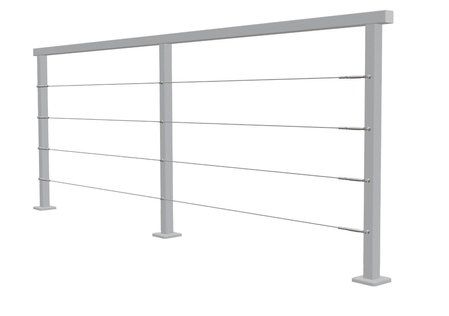 Alu Wire is CE-marked to EN 1090-1 and built from premium materials. The stainless steel cables are AISI 316 (acid-resistant), while the powder-coated aluminium posts are finished to marine standards – the same used on sailing yacht masts.