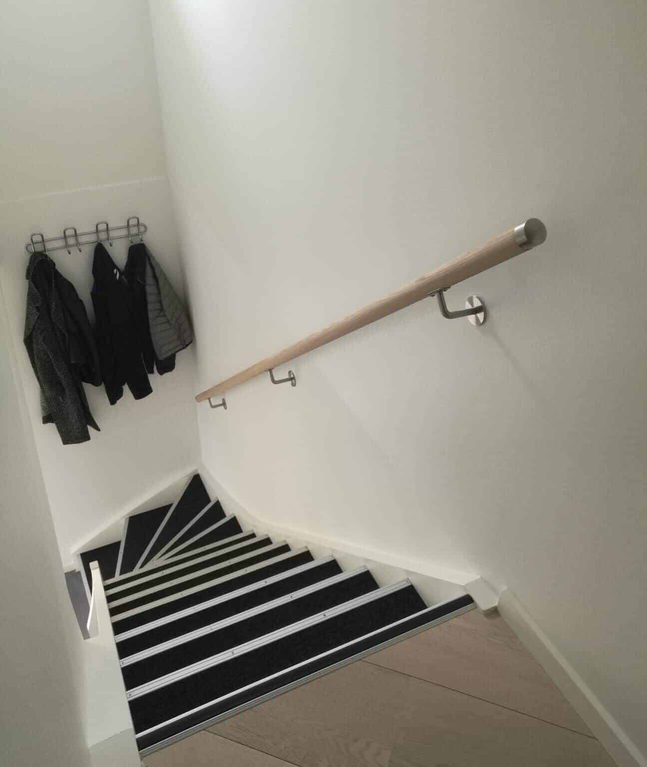 All timber handrails are delivered untreated, so you can oil, stain or paint them to your preference. Or choose a pre-painted version in black or white in our configurator.