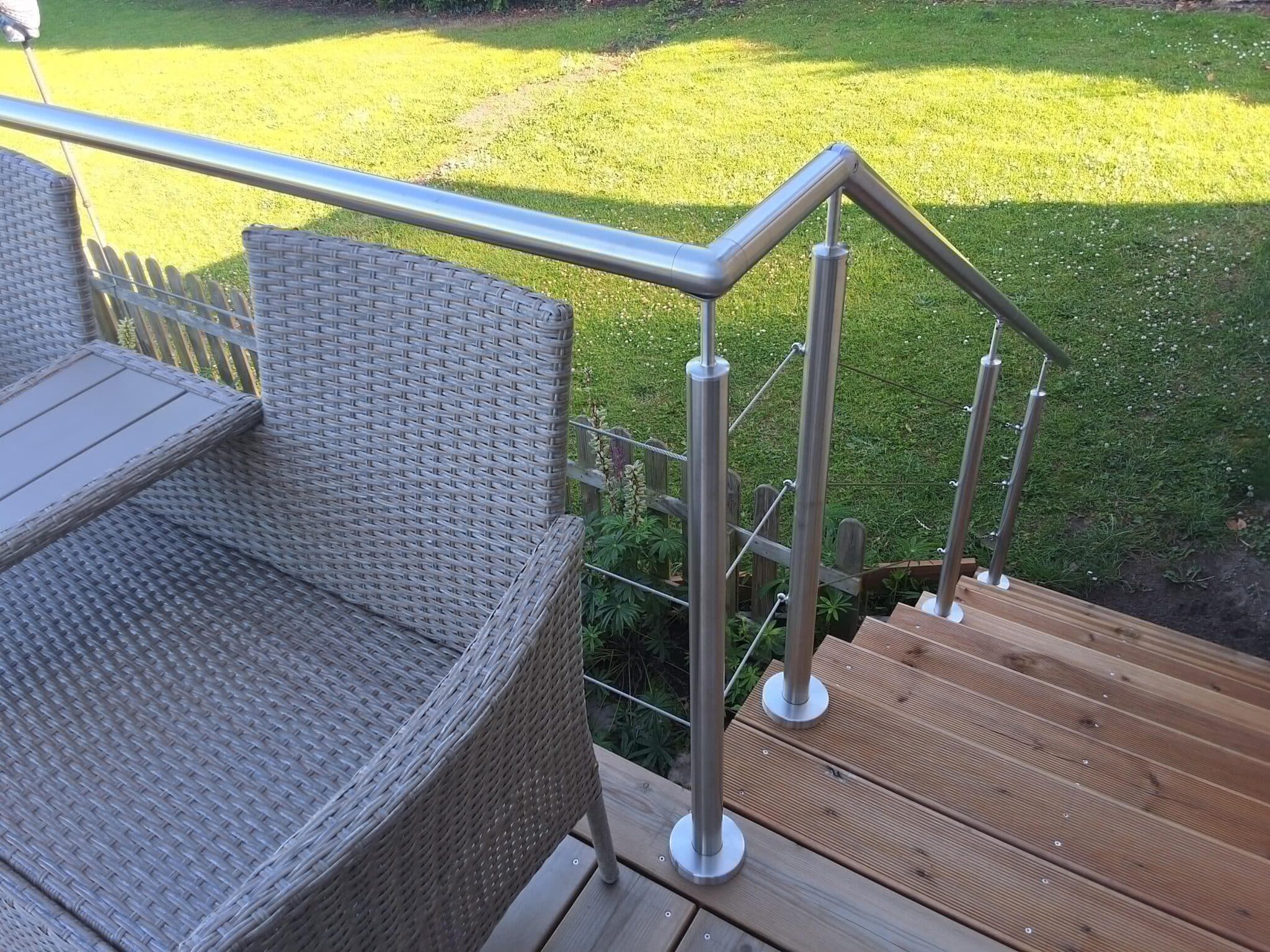 We follow UK standards recommending cable gaps of no more than 100 mm. Our design tool helps you calculate this based on your chosen railing height.