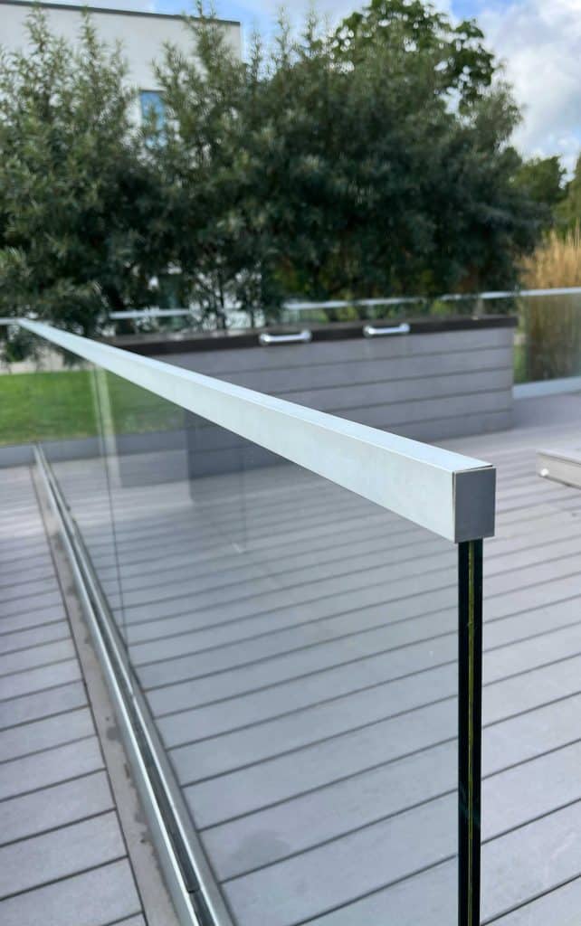 - 12.76 mm laminated safety glass with aluminium handrail